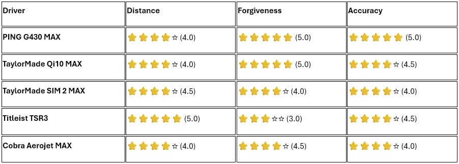 Comparison Table: Best Golf Drivers 2026